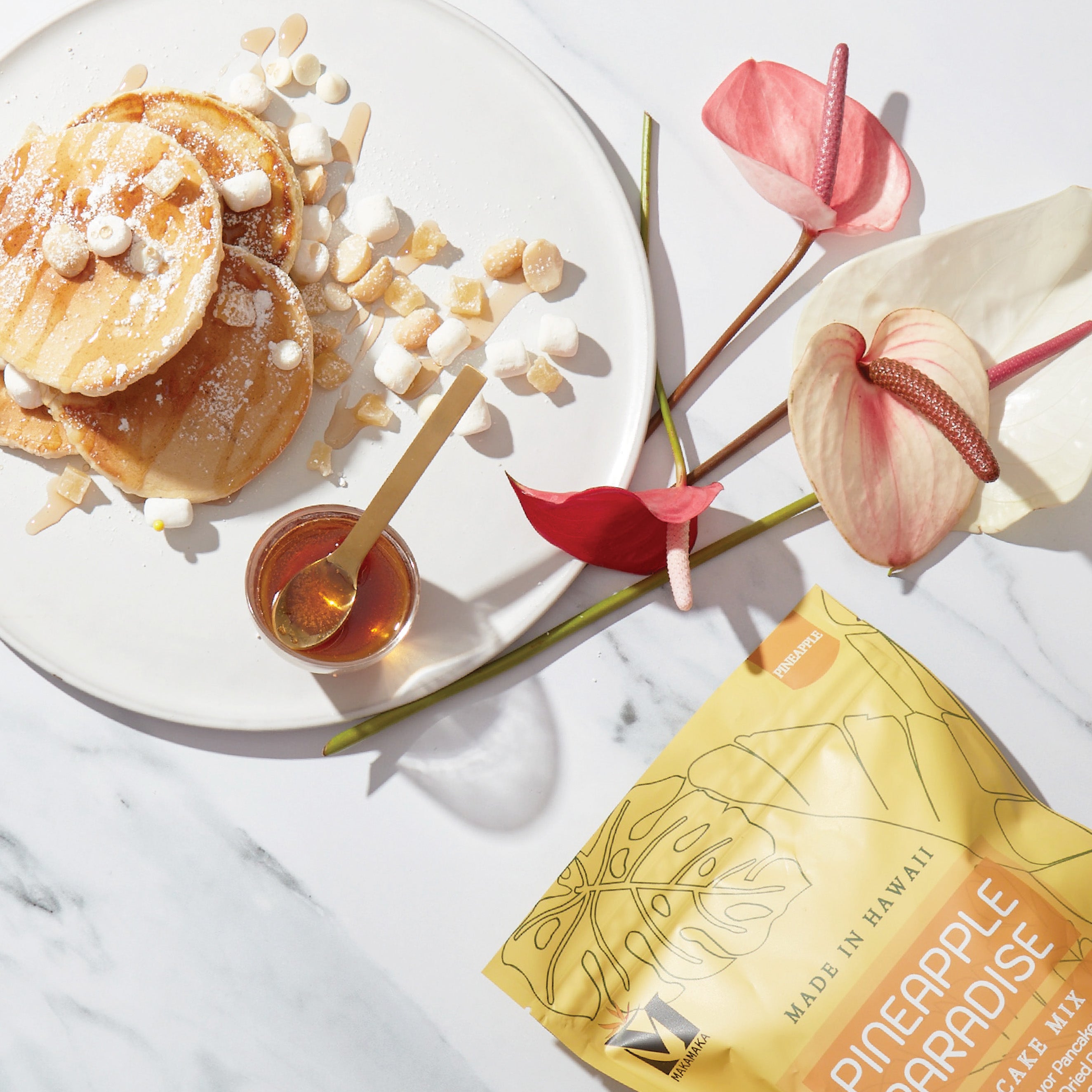 Over a glass of wine and a table filled with local Hawaiian fare, founder Peter Kang explored the possibility of starting a new snack company. Inspired his love for food, design, and Hawai’i, he created Makamaka Snacks, a Honolulu-based company with a passion for creating gourmet Hawaii-inspired snacks. Working with local vendors and growers, a line of beautifully packaged pancake kits with curated ingredients is now available.